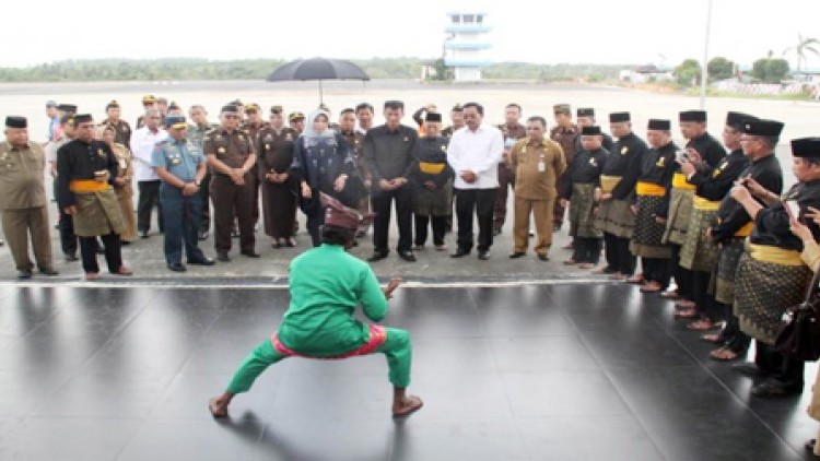 Sebelum masuk ke ruang VIP Bandara, Kajati Kepri Edi Berton terlebih dahulu disambut dengan tari silat khas Melayu. Seorang pesilat Melayu yang dibarengi dengan alat musik tradisional, beraksi di depanya.