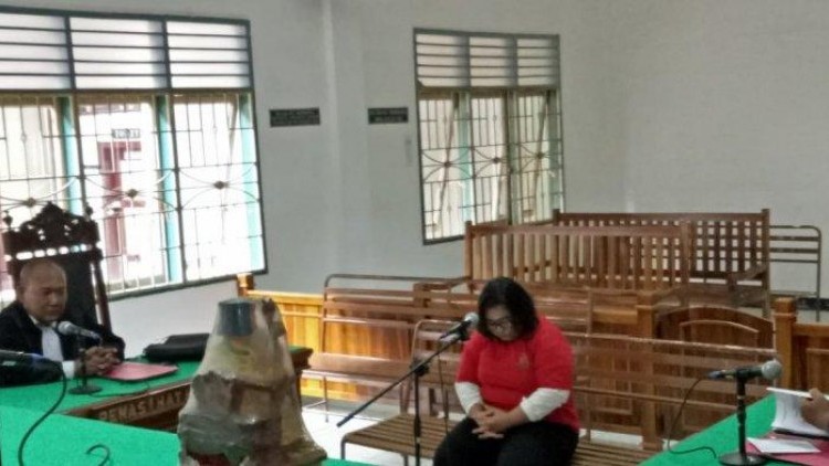 Terdakwa tampak tertunduk lemas usai jaksa menolak eksepsinya, terlihat termenung dihadapan Majelis Hakim yang diketuai Irwan Effendi.